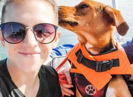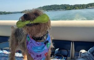 " I went on my second trip on the Pooch Pontoon.... Once again, I had a great time. The dogs loved it and it was still warm enough that everyone could swim, as well as explore the island. Also had a very valuable harness lesson for my younger dog. She is a puller and Candace showed me how to use a 2-point harness. I will be using one from now on. Thank you again Candace. We look forward to our next trip!"